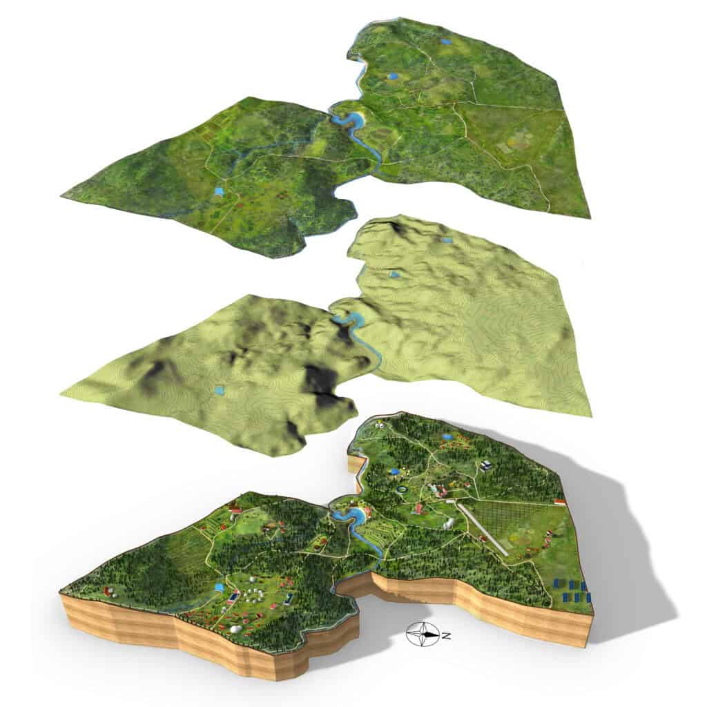 Using RhinoLands and QGIS, a highly accurate 3D model was created remotely, utilizing precise topographic data from a LiDAR drone survey. This ensures that the model is highly representative of the real landform.