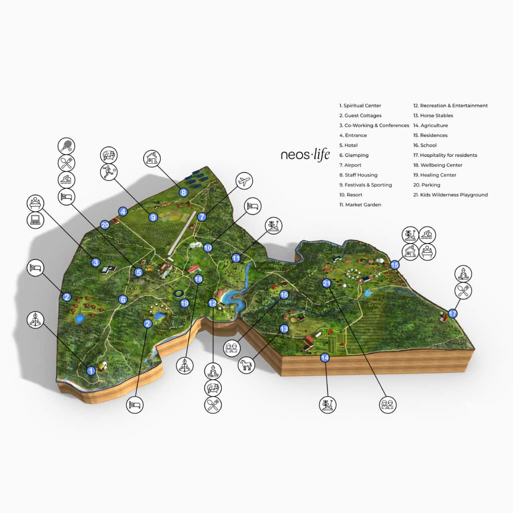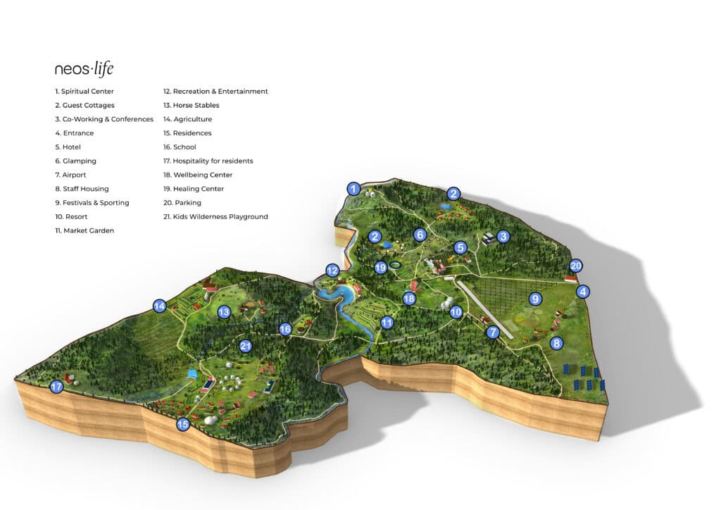 Neos·life is a groundbreaking concept in sustainable living, aiming to create a self-sufficient, lockdown-safe village for 1,000 people. This visionary project promises harmony with nature, self-sustained resources, and a strong sense of community. Key features include independent water and energy systems, an organic farm, a well-being and healing center, educational facilities, residences, and a retreat hotel and resort. Located in the scenic Alentejo region in Portugal, this project aims to birth a new civilization model. For more information, visit www.neos.life.